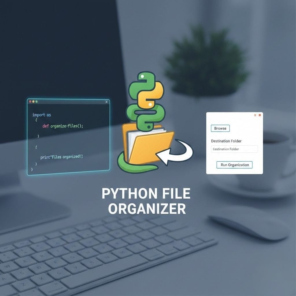 A Python automation script that organizes files in a folder based on file type such as Images, Documents, Music, Videos, and Others.